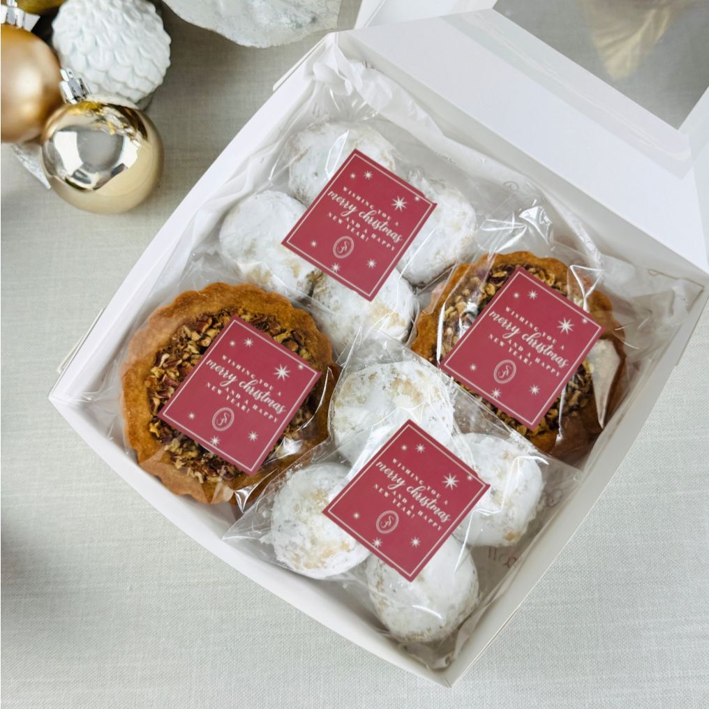 Caja con delicioso mix dulce que contiene 2 bolsas de pays de nuez y 2 bolsas de copos de azúcar.