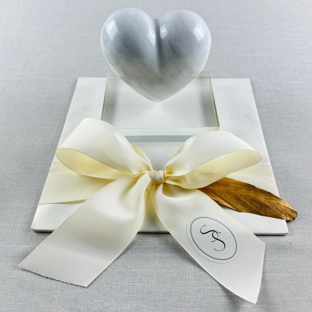 Corazón de mármol blanco punta plana, tamaño 13 cm.