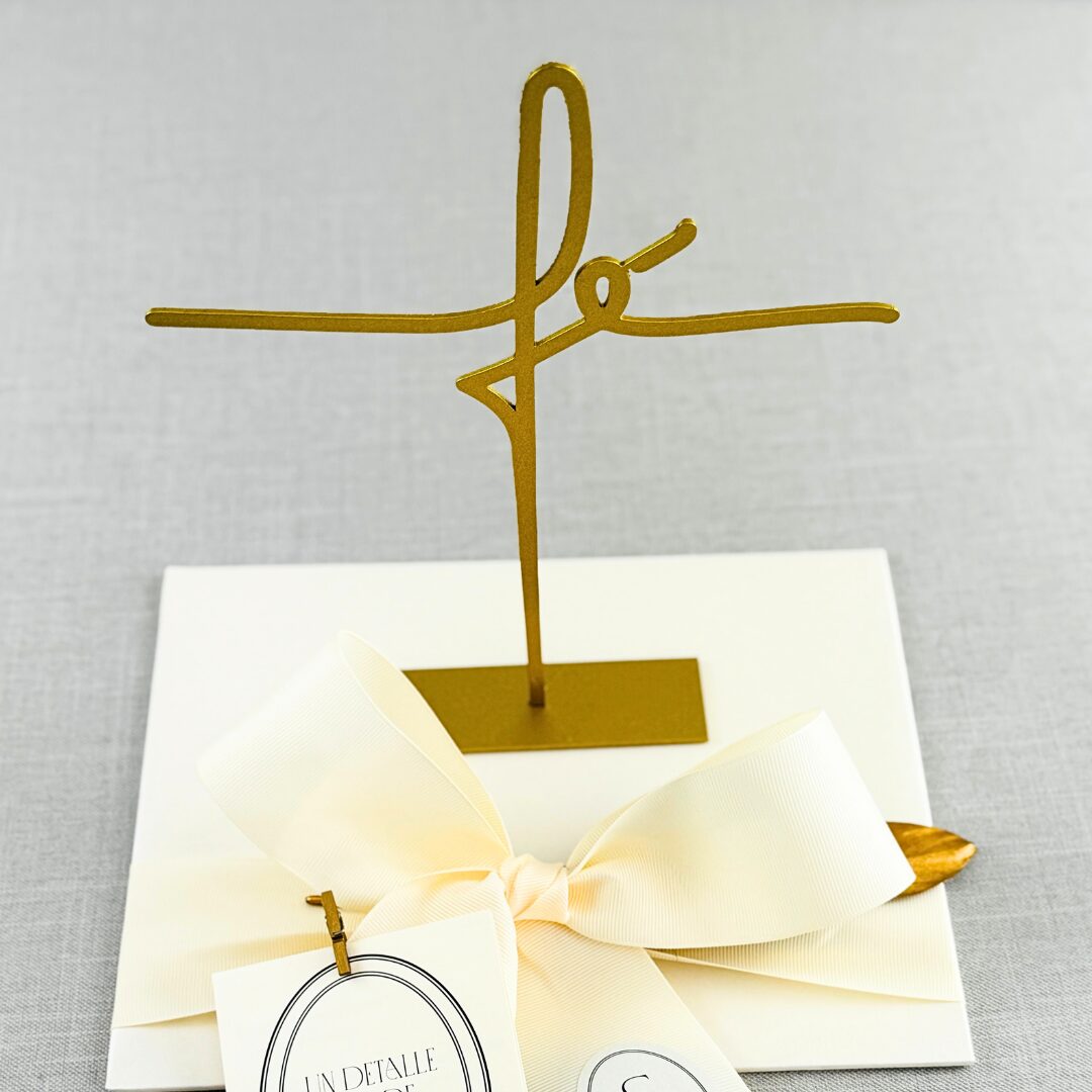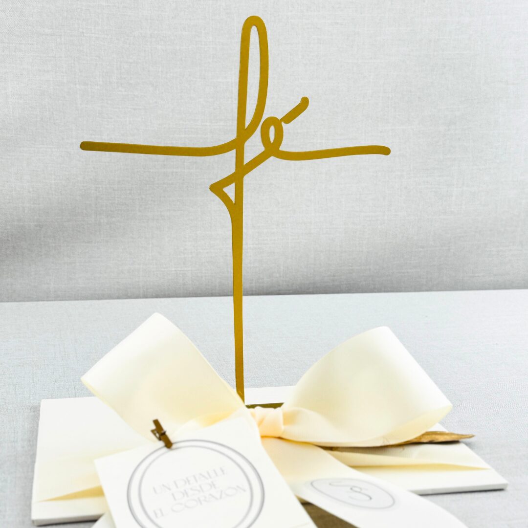Nuestra Cruz Fe esta fabricada en acero y disponible en dos elegantes acabados: dorado y plateado.