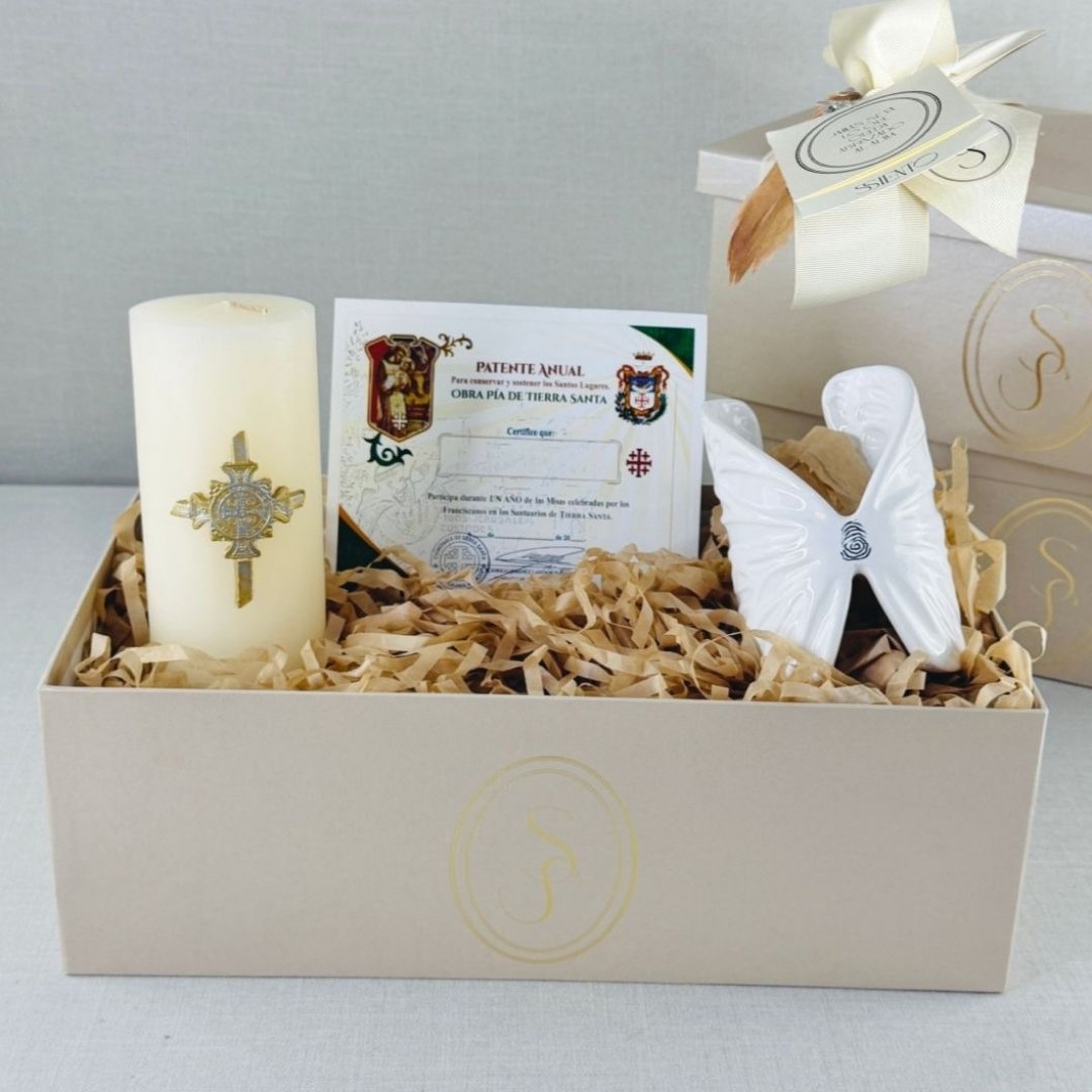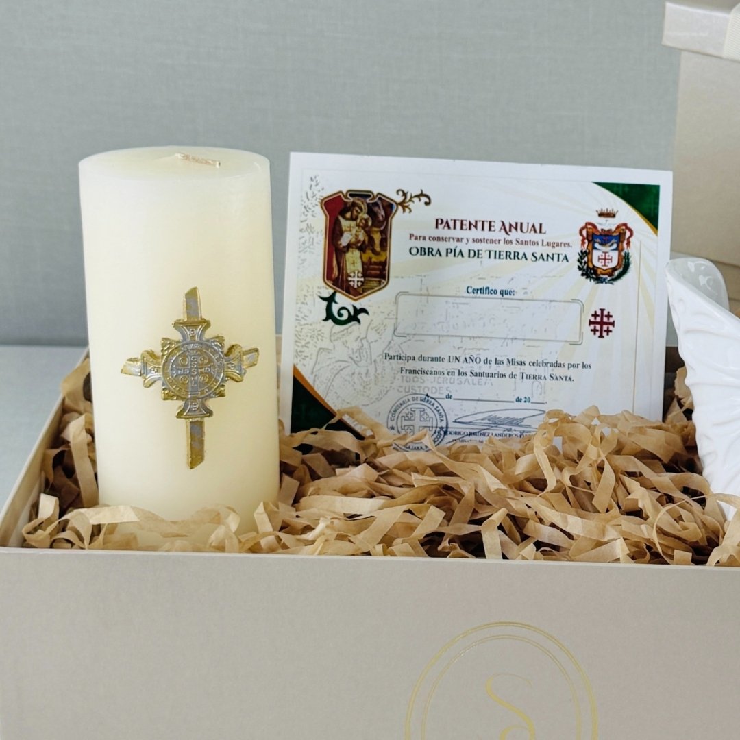 Cirio mini de Cruz dorada (medidas: 15 cm de alto por 7cm de ancho)