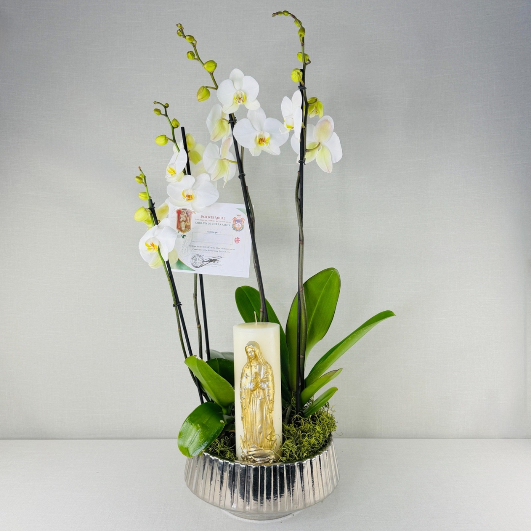 ORQUÍDEA NATURAL DOBLE EN MACETA PLATEADA