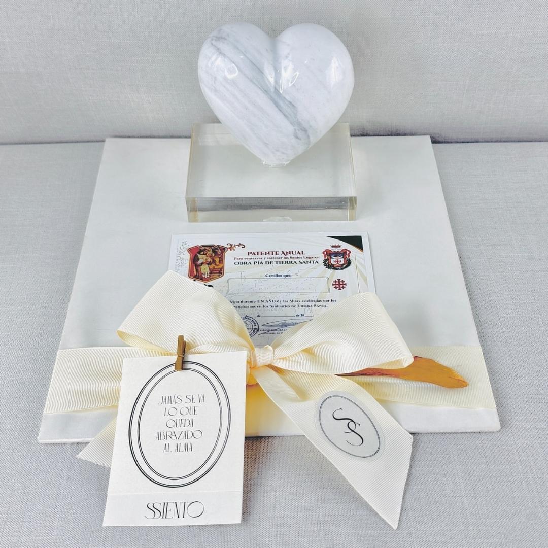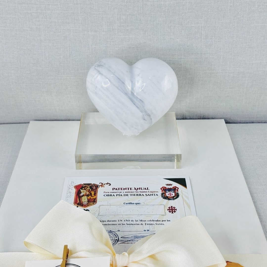 CORAZÓN DE MÁRMOL BLANCO - Con base transparente