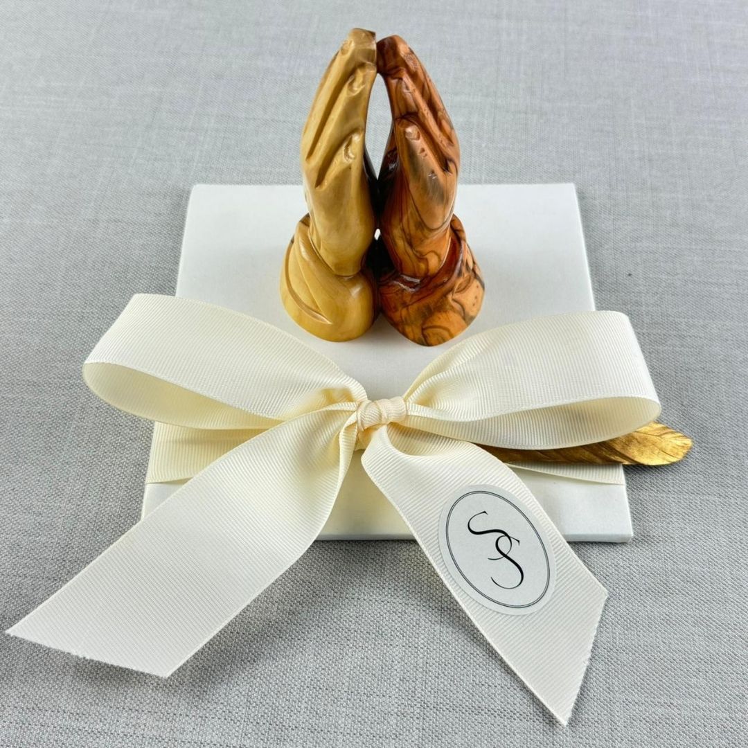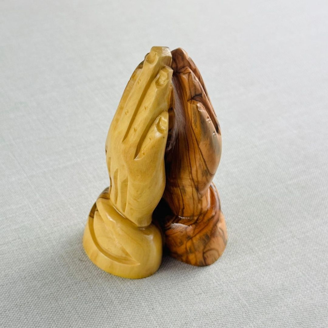 Manos de madera de olivo elaborada con tierra traída directamente de Jerusalén.