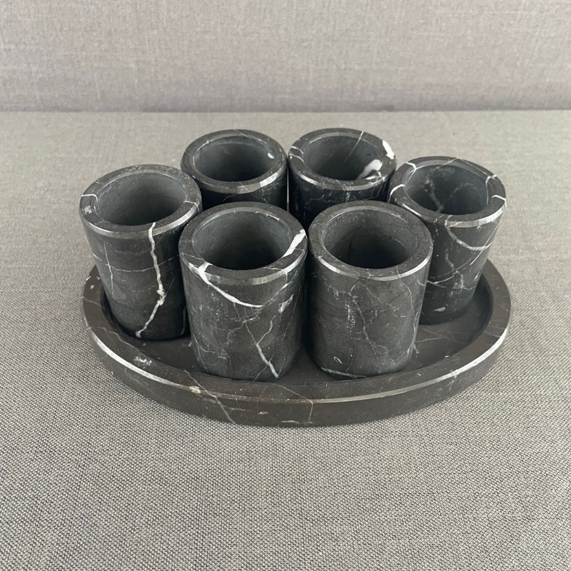 Medidas del vaso: 6 cm alto, Base: 20 cm largo.